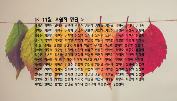 2025년도 11월 후원자명단 페이지 정보 작성자 관리자 작성일25-12-03 17:19 조회710회 댓글0건 관련링크 이전글 다음글 목록 본문 후원에 감사드립니다. 댓글목록 등록된 댓글이 없습니다. 이전글 다음글 목록